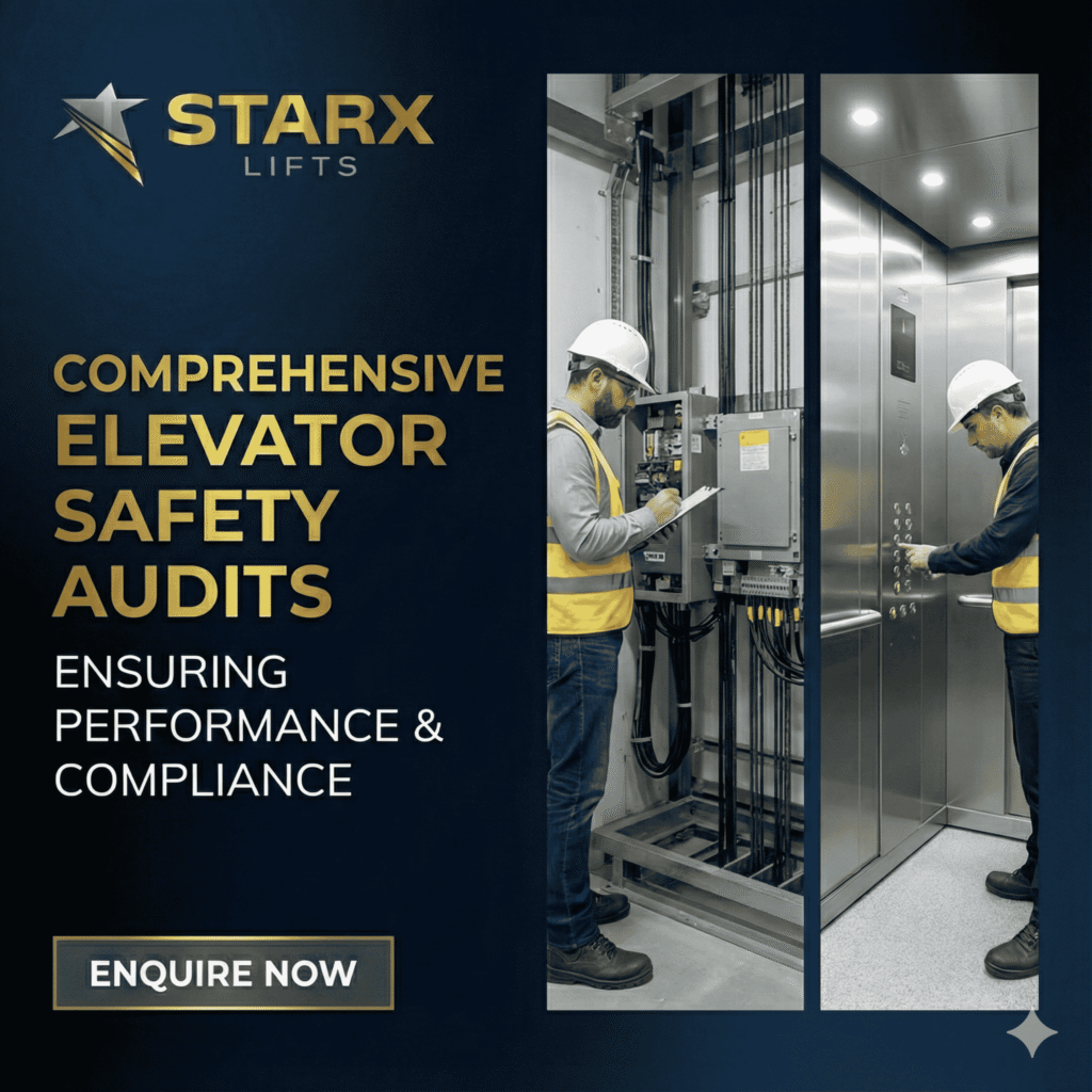 At StarX Lifts, we conduct detailed and certified elevator safety audits to ensure your lift systems operate smoothly, efficiently, and fully within regulatory standards. Our audit process identifies potential risks, performance issues, and safety gaps—helping you prevent breakdowns, avoid costly repairs, and maintain a safe environment for passengers.